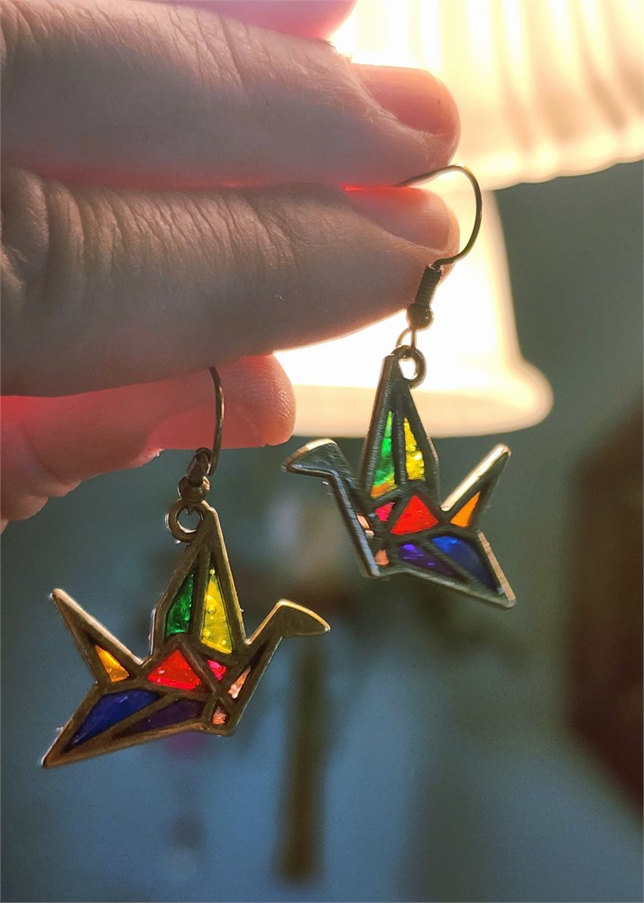 Beautiful origami crane earrings made of tibetan steel and filled with Beautiful vibrant resin colors. Earrings wire is 925s. Very light weight and simply stunning