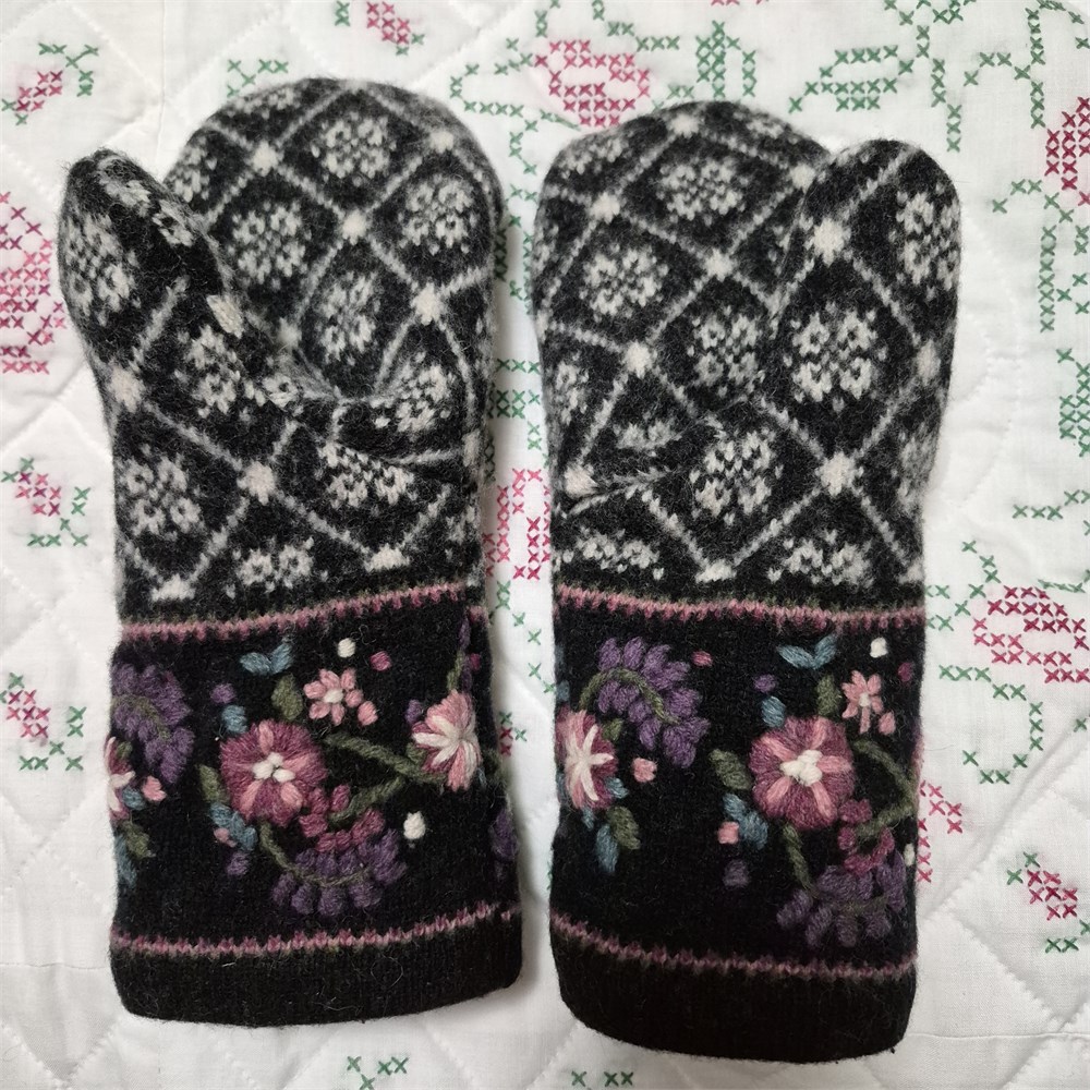 This pair of women's mittens is made from an upcycled Wool sweater. Lined with Luxe Fleece. Super warm, comfy and made a couple inches longer than standard mittens to cover and keep your wrists warm as well!