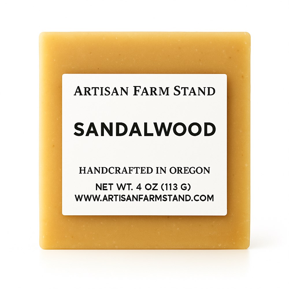 Each bar showcases warm tan, amber, and woody swirls that mirror its natural, earthy aroma. Crafted with nourishing oils and butters, it produces a rich, velvety lather that leaves your skin feeling soft, refreshed, and lightly scented with sandalwood’s soothing warmth.