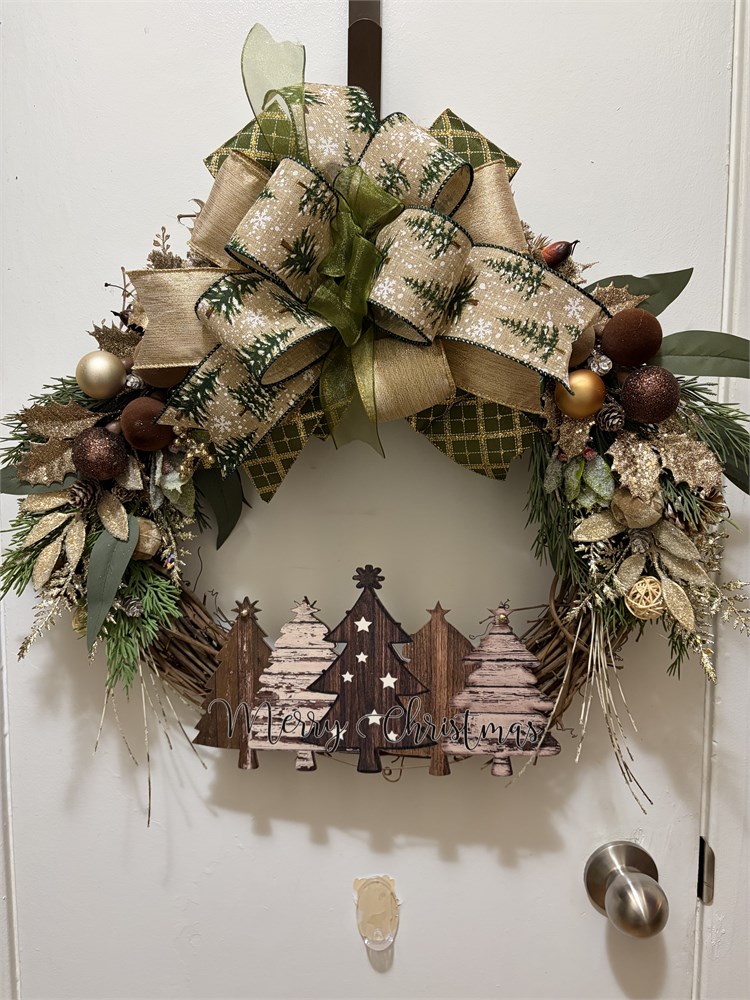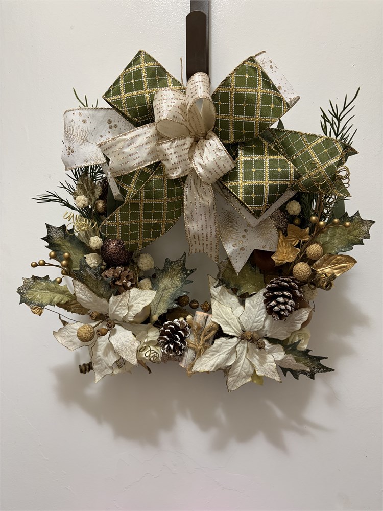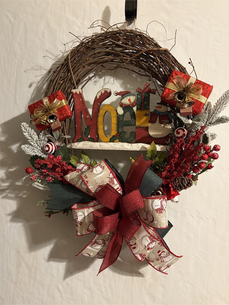 Beautiful Christmas wreath made of mesh or grapevine. An assortment of colors.