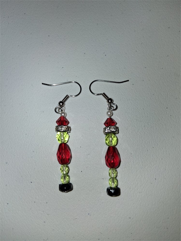 These are Grinch earrings that are handmade. Around 2 inches long. Sterling silver. There 10.00 and shipping depends on location and weight.